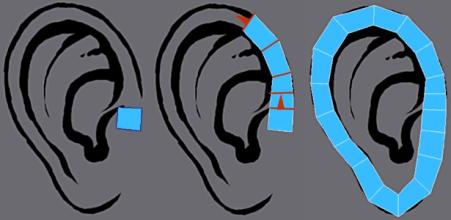 结合上图,我们结合三角板和柔性模组可以拼出一个耳朵造型的LED显示屏,同理下图。